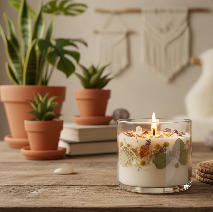 Inspired by nature, our ethically crafted candles are designed to elevate both your space and your spirit. Hand-poured with care, each candle brings a touch of mindful wellness and natural beauty into your home.